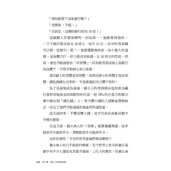 世界新首富「股神」巴菲特、科學巨人愛因斯坦、「華爾街之子」摩根、石油大王洛克菲勒、「金融天才」索羅斯、「普利茲新聞獎」的創始人普利茲、電影巨頭華納兄弟、著名導演斯史蒂芬史匹柏、甲骨文CEO賴瑞‧埃里森、心理學家佛洛德……這些聲名顯赫的人物雖然在不同的領域成功,但是他們有一個共同的身份──猶太人。另外,美國華爾街有一半以上的超級富翁是猶太人,諾貝爾獎的獲得者中猶太人占總數的30%以上。