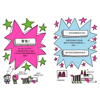 更難得的是,本書強烈的塗鴉風格、爆笑畫面,非常切中國小學童喜好的搞笑文化。書中多樣化的活動設計,也讓孩子可以在邊讀邊玩中,和書本產生更多互動,也讓閱讀經驗更容易轉化為實用的社交情緒智慧。