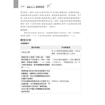本次改版由我負責的擬答,包括113年司律第1題第2、3小題(頁2-265)、113年司律第2題第3小題(頁2-229)、113年台大第2題(頁2-35)、113年政大法研第1題第2小題(頁3-3)、113年北大第4題(頁2-125)、113年台大法研第3題第1小題(頁3-69);舊題新解的部分,包括死刑之合憲性(頁2-201);題型分析的部分,包括113年台大第1題(頁2-315)、113年北大法研第3題(頁3-43)、113年政大法研第2題(頁2-305)、113年北大第2題(頁1-9)。