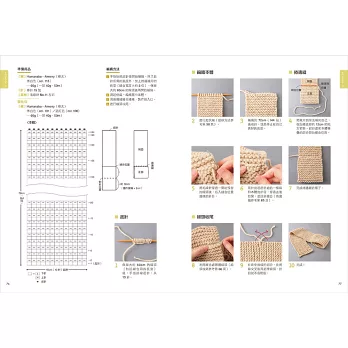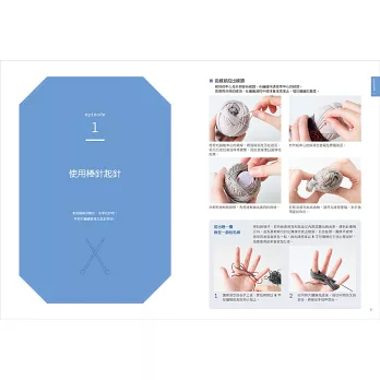 本書在章節編排上,特別設計成能夠「循序漸進熟練棒針編織」的方式,就像你進入實體編織教室一樣,從認識材料工具開始,接著一邊練習針法一邊做出小圖案,最後再運用不同針法完成大型作品。一步步建立好基本知識與技巧,讓你不再覺得編織很陌生。