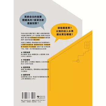 這本書的出現,將為眾多想踏入房市卻無從下手的首購族,帶來許多幫助。作者以圖文並茂的方式,將複雜的房地產知識淺顯易懂地呈現,讓大家能快速建立起對房市的基礎概念。書中不僅涵蓋了房產交易的理論知識及作者多年來的實務經驗,也包含時下熱門的房地產議題,讓讀者能更貼近真實的房市狀況。如果你正在考慮買房,誠摯推薦你閱讀這本書。──曾東茂 | 瑞普萊坊創辦人暨總裁、CCIM臺灣不動產投資協會創會理事長