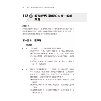 這本書裡收錄了113年各校教甄國語文試題以及教師資格考試題,並逐題都有詳盡解析,每個選項都以條列的方式讓你了解為何錯、為何選,申論題也示範擬答讓你了解為何這樣寫,透過練習題目與解析重新複習考試重點,了解考試趨勢、出題方向,就能在浩瀚茫茫的學海知識中看見上榜的明燈,不浪費時間,能更專注在重要必考的題型上,早日上岸。