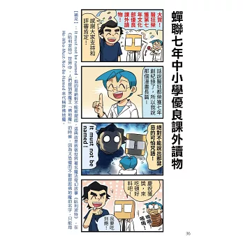 衛教醫學知識:專業完整的醫療人員團隊擔任漫畫顧問,包括各科醫師、藥師、牙醫師、中醫師、護理師、復健師、職能治療師和心理師等,專業正確的醫療知識,讓《醫院也瘋狂》連續七年獲得「國家中小學優良課外讀物」。