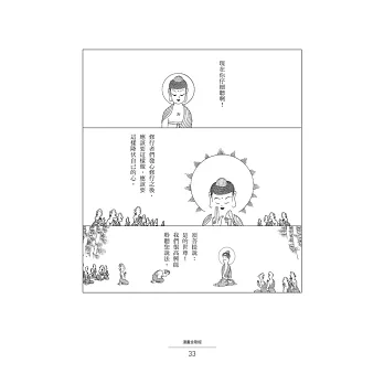 曾經不得其門而入的人,如今有了另一種入門的方式:蔡志忠以多年參閱佛書所領略的禪意,描繪出佛陀與眾弟子各種姿態,以及山石樹木的意境。將原本的深奧經文轉為易讀的白話文,搭配漫畫情境,讓佛陀與須菩提的問答顯得靈動傳神,每一句、每一張圖都各有其自在與妙意,幫助現代人一窺金剛經的法門,體悟心靈的安頓與智慧的啟迪。