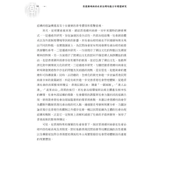 作者突破一般社團研究側重線性描述的平面框框,把一個具有重要影響力的民間社團放到更大的時代歷史背景,運用社會學知識,從公共管理的角度來分析潮州商會的社會理功能和作用,揭示這家老牌商會屹立香江逾百年,不斷傳承和發揚光