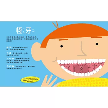 我們每天都要吃飯和說話,嘴巴裡的牙齒扮演著重要的角色,這本繪本從牙齒的構造、如何刷牙、蛀牙的原因及看牙醫的步驟、飲食對牙齒的影響,以至各種關於牙齒的趣聞,運用活潑的口吻呈現,能引導孩子養成正確的刷牙習慣、不怕掉牙、不怕看牙醫等,爸媽們一定要帶著孩子閱讀這本好書唷。—巫漢盟/阿包醫生|禾馨醫療體系兒科專任醫師