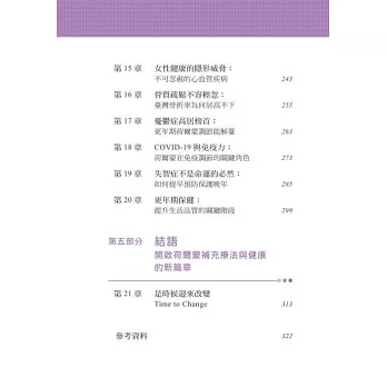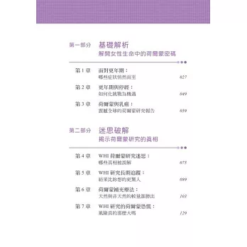 女性健康的關鍵轉折,妳準備好了嗎?破解轟動全球20年的荷爾蒙迷思,透過本書,妳將學會: