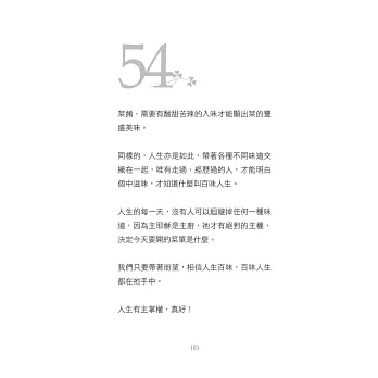 同樣的,人生亦是如此,帶著各種不同味道交織在一起,唯有走過、經歷過的人,才能明白個中滋味,才知道什麼叫百味人生。