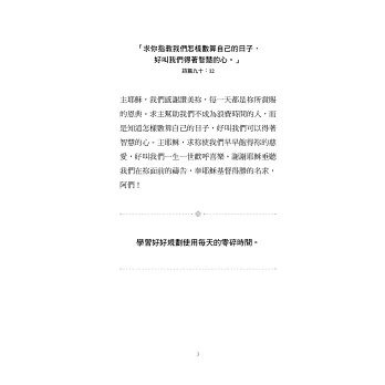 「求你指教我們怎樣數算自己的日子,好叫我們得著智慧的心。」(詩篇九十:12)