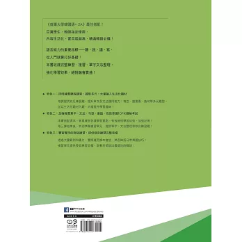 本書搭配課本,著重練習各課學習重點,有效檢視學習成效、加強記憶!每三課結束後,特別準備複習單元,提供單字、文法整理和綜合練習題!