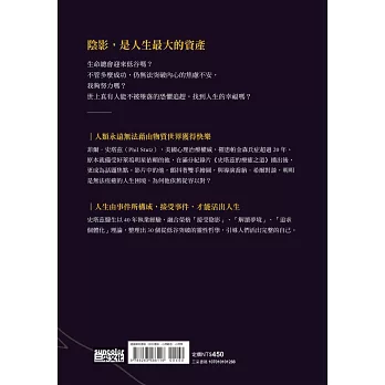 史塔茲醫生以40年執業經驗,融合榮格「接受陰影」、「解讀夢境」、「追求個體化」理論,整理出30個從低谷突破的靈性哲學,讓我們看到「陰影」如何成為人生最大的資產,引導人們活出完整的自己。