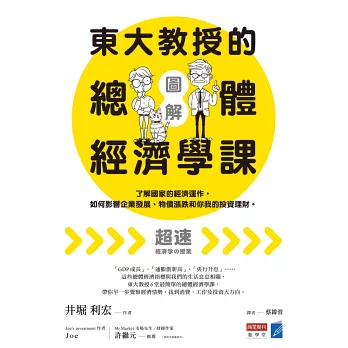 《【圖解】東大教授的總體經濟學課》是教你想通全球經濟局勢,學會使用總經想像力的好工具。與太過簡單或過於困難的總經書相比,本書拋開複雜的理論和公式,透過教授和上班族學生的課堂對話,以貼近生活的例子解說總經基礎概念,輔以圖解加深記憶、提示重點,讓你讀懂財經新聞,活用總經思維,不漏接未來的大小機會。