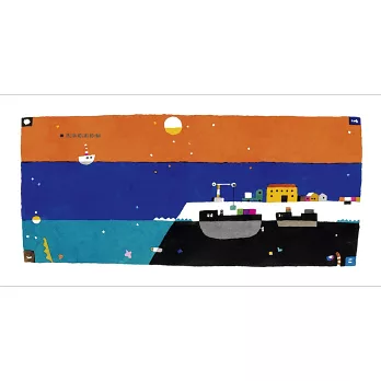 本書的獨特外盒同樣由五味太郎親自設計,書盒的正反兩面都能窺見小船,抽出書本後,可以看到這艘小船即將啟航、駛向廣闊的大海,設計別具巧思。