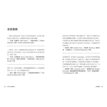 一本發人深省的好書,探討工作為何如此重要。這本書不會提供你正確的答案,卻會幫助你提出正確的問題。──亞當.格蘭特(Adam Grant),《隱性潛能》(Hidden Potential)作者、Podcast《WorkLife》主持人