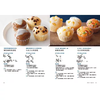 ‧類型豐富:收錄美式鬆餅、麵包、甜甜圈、蛋糕卷、馬芬、司康、花林糖、卡布樂、鹹派等各種點心類型及其變化,即使是烘焙新手,也能將名師風味完美復刻,實現烘焙夢想。