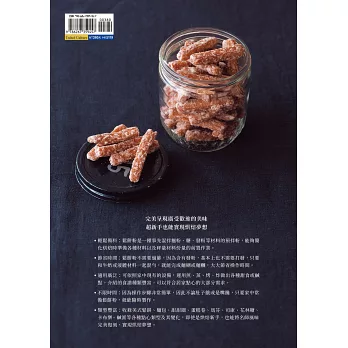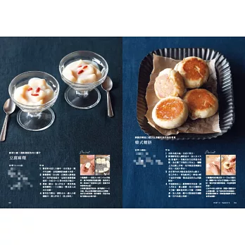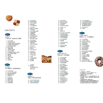 ‧適用廣泛:可依照家中現有的設備,運用煎、蒸、烤、炸做出各種甜食或鹹點,介紹的食譜種類豐富,可以符合居家點心的大部分需求。