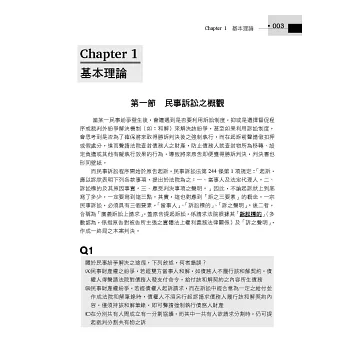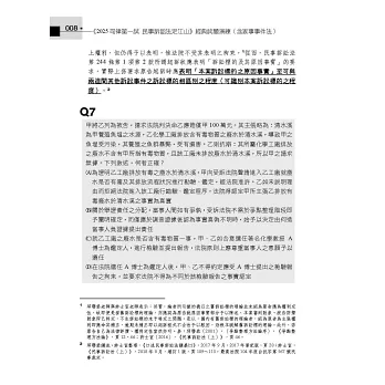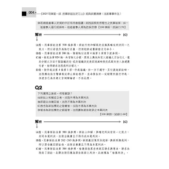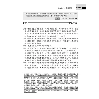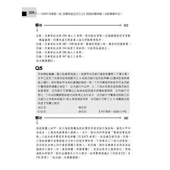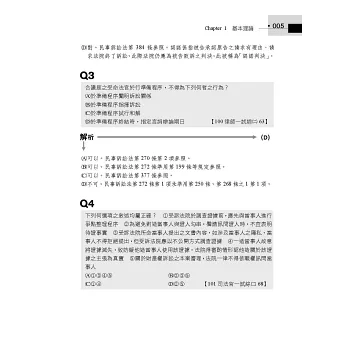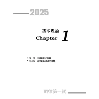 而第一試從99年預試到113年也考了15次了,考點往往會類似甚至重複,因此先花一個下午的時間把民事訴訟法、家事事件法法條看過一遍,再用本書大量刷題,透過本書所章節化整理的這15年一試考題,以每5題為一組進行刷題,每刷5題再一次看這5題的答案跟詳解,透過這樣的方式,就相同或相類似概念進行檢討,我相信會是準備司法一試乃至於法科大魔王民事訴訟法的最佳選擇。