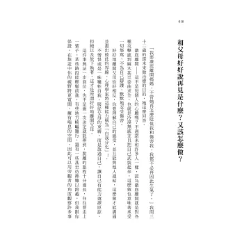 脫離父母的獨立之路雖然不容易,卻是我們的畢生課題,也是邁向自由自主的唯一途徑。唯有積極面對,才能與父母建立健全的關係,重新掌握自己的人生。
