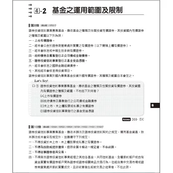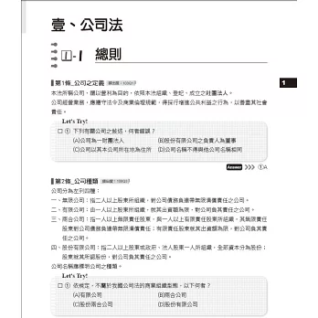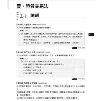 本書內容在法規條文當中附上理解試題讓讀者練習,測驗自身的吸收狀況,對於法規書籍而言,閱讀上應循序漸進,避免囫圇吞棗,因此邊研讀法規時,邊進行測驗是編者認為最有效率的閱讀方式。