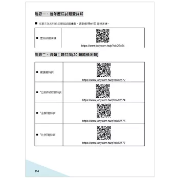 快前往www.jody.com.tw,開通帳號並輸入書上的「書籍題庫啟用碼」,即可無限題數,盡情演練本科試題。