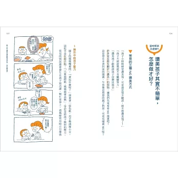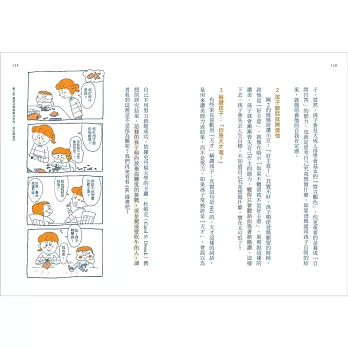 四格漫畫呈現30+組親子對話場景,讓父母與孩子一起閱讀,透過情境討論加深親子連結。
