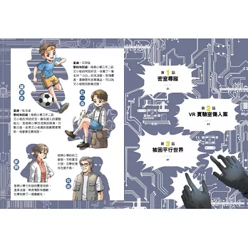 ﹝漫畫讀本﹞則為搭配兒童小說版本之全新創作系列,以「尖端科技」為主題,將有關「人工智慧」、「虛擬實境」以及「病毒疫苗」等元素,和偵探故事巧妙融合,透過更生動詳實的全彩漫畫形式,搭配富含知識性的文字敘述,使閱讀變成參與「分析判斷」和「推理」的解謎過程。希望透過這本書,能讓孩子用另一種趣味的形式提升邏輯推理能力及增進科學素養!