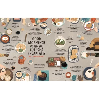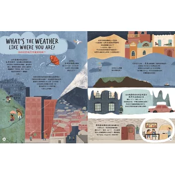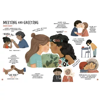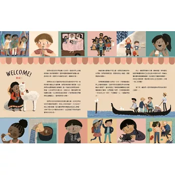 在本書中,你可以看到更多不同的生活樣貌,以小朋友的視角呈現在整部作品中。美妙的畫風點亮引人入勝的新鮮主題,身在台灣的小朋友們也可以藉此看見不同風貌的食衣住行育樂,感受全世界多元文化的智慧與魅力。