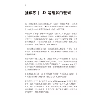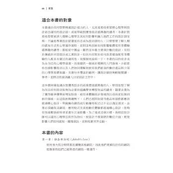 無論你是UI/UX設計師、產品設計師,還是對體驗設計充滿熱情的開發者,《使用者體驗法則》都能讓你的靈感直擊使用的的心。