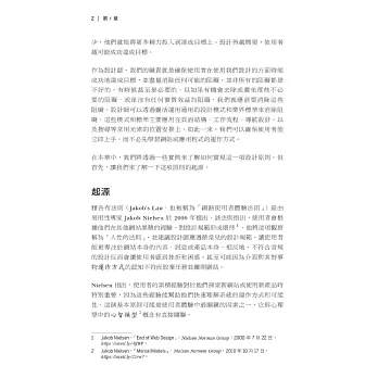 「《使用者體驗法則》是一本極具價值的資源,不論是對剛踏入使用者體驗領域的新手,還是資深的設計專業人士都適用。這本書鼓勵設計工作者們深入探究為什麼要這樣設計的「原因」,而不僅僅是復刻現有的設計模式。」 - Chris Desjardins,Tungsten CEO