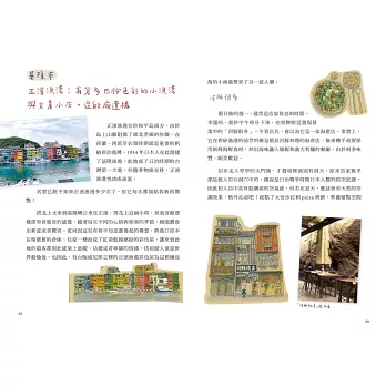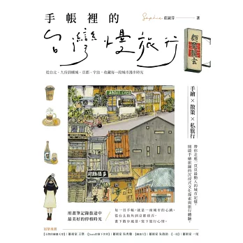 本書用溫暖的插畫與細膩文字,記錄繪下台灣各地旅行,以及馬來西亞、日本城市散策時的所見所感。從基隆的彩色漁港到檳城美食之都、京都清酒之城;從西門紅樓的歷史建築到宇治神社的千年傳說,一頁頁手帳,不只收藏了城市的風景,也保存了旅行回憶的溫度。