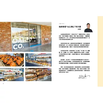 烘焙作為生活態度,在快節奏時代中,烘焙是傳遞愛與溫暖的方式,從初學者的懵懂好奇到專業麵包學徒的艱辛歲月,每一步挑戰都轉化為技藝與見解的養分。不只是一本烘焙食譜,更是一場心靈與技藝的雙重旅程,引領讀者在揉捏麵團的過程中,找到生活的溫度與節奏,將愛與關懷揉進每一口麵包之中。