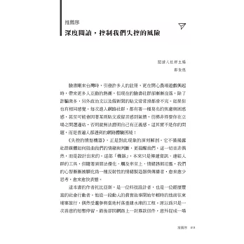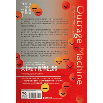 「這本書真的讓人愛不釋手。它揭示社群平台如何在不經意間讓用戶沉迷於憤怒的情緒,以及我們該如何才能清醒過來。《失控的憤怒機器》絕對是你的必讀之書。」 ——Theory of Enchantment創辦人克蘿伊.瓦爾達里(Chloe Valdary)