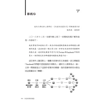 「這本書引人入勝地探索了我們這個時代的雙刃劍──社群媒體,以有系統的步調追溯當前處境的形成演變、各種息息相關的層面,以及可行的解決途徑。絕對是一本刻不容緩的必讀之作。」 ——《紐約時報》暢銷書《子彈思考整理術》(The Bullet Journal Method)作者瑞德.卡洛(Ryder Carroll)