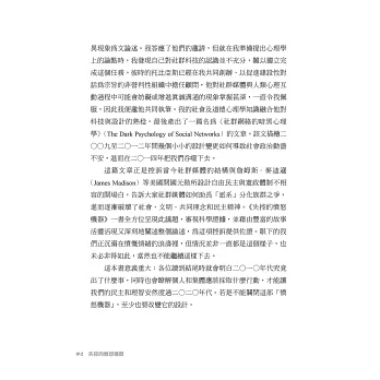 利用我們憤怒的觸發器和策略,作者剖析這些工具如何劫持我們深層的部落社會本能和心理脆弱性,以及它們如何成為專制者的機會主義平台,對民主規範造成重大威脅。不僅點出社群媒體的問題,作者更帶我們深入探討每一項新的媒體技術是 如何擾亂我們理解世界的能力,從印刷機到電報,從廣播到電視。