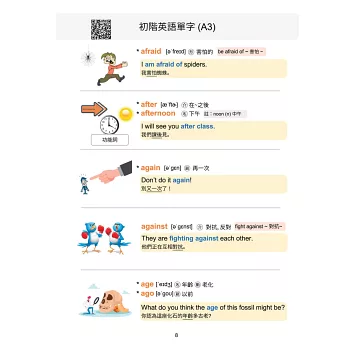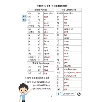 英語學習者最困難的就是單字,但若要硬背單字,不如產生印象,並不斷接觸。《破解英文DNA單字篇》每個單字都有影片、圖片、及四種單字遊戲。每個單字影片及遊戲都採用QR Code掃描就可以看影片、玩遊戲,無須另外安裝app,不僅省去安裝app的步驟,也不用擔心手機版本與app不相容的問題。