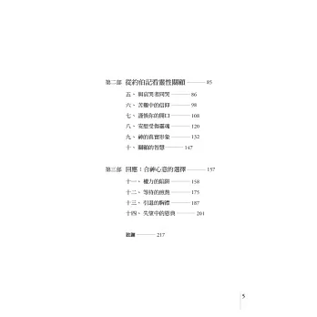 這本書旨在通過約伯的遭遇,探討在苦難中,我們如何能夠給予關愛和支持。約伯記不僅是對苦難和不公的深刻反思,更是一部教導我們如何在他人痛苦中施以關懷之手的作品。本書分為三部分,第一部探討約伯記中的哲學迷思;第二部則從中提煉出靈性關顧的實務智慧;第三部為本書的後記,可以說是對第一、第二部的回應,藉由掃羅、大衛、撒母耳和摩西這四位神所揀選的僕人,探討他們在面對挑戰、失望與痛苦時所做的選擇,進而看到上帝在他們身上格外的恩典。
