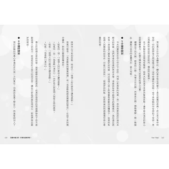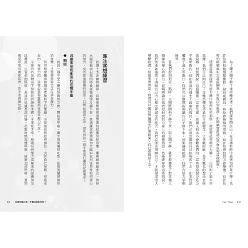 2. 克服六種常見恐懼的六步驟自救法:害怕失敗、孤獨、未知、衝突、被拒絕、被忽略,以六個案例,說明六個具體步驟,打破舊模式,找到應對的新模式。