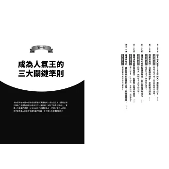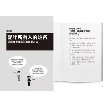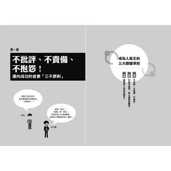 各章末摘錄該章的金句,幫助讀者加深印象、溫習內容更快速。邊欄也整理了30條學習擁有好人緣的重點,幫助讀者掌握各章節的精華,加速吸收本書的思想。
