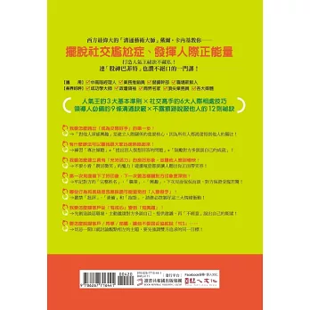 巴菲特讚譽:「卡內基訓練是我這輩子拿到最有用的文憑!」他的自傳《雪球》中,更有多達16處提及卡內基如何幫助他成就今日輝煌的地位!卡內基堪稱西方社交技巧教育奠基人,本書更可說是21世紀各類心理勵志書的始祖,出版80年仍攻佔Amazon心理勵志暢銷榜,足以驗證其實用性與普世性。