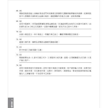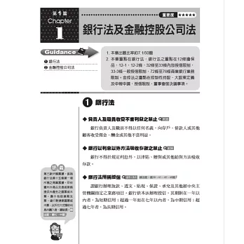 近期重要修法諸如:銀行資本適足性及資本等級管理辦法、金融控股公司及銀行業內部控制及稽核制度實施辦法、金融機構通報重大偶發事件之範圍申報程序及其他應遵循事項、國際合作商品新臺幣相關款項收付之核准、金融消費者保護法......等。本書特進行全文修訂使之「對應最新法令規定」,確保考生不至於因讀到舊法而答錯題目。
