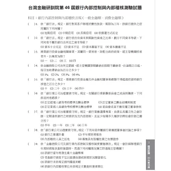 「銀行內部控制與內部稽核測驗」係台灣金融研訓院舉辦之各項金融證照測驗中最熱門,參加人數最多的考試,由於其考試內容之範圍除出納、存匯、放款、外匯等基本業務外,尚有投資、信託、財富管理、票券及證券、消費金融、資訊、衍生性金融商品等業務,不但龐雜而且零散,在應考準備上相對於其他測驗吃力,考生若僅閱讀台灣金融研訓院印行的「銀行內部控制與內部稽核法規輯要」、「銀行內部控制與內部稽核」二本指定用書,常常無法把握重點,進而發生相互混淆之情形,為能幫助應考人員化繁為簡、把握綱領,實有必要做應試重點整理。
