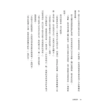 我們也將追隨作者經歷一場宛如《大亨小傳》的華麗冒險——搭乘灣流私人飛機飛往各地,無論是中世紀城堡的露台、孫正義的專屬餐廳和其精緻的日式花園,與一流企業執行長和國家元首會談,卻也因身陷龐大資金陷阱,最終導致了威脅其個人聲譽的抹黑暗鬥。