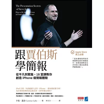 在商業世界裡,我們需要的不只是邏輯,更是一種能讓人「行動」的簡報力。而這本《跟賈伯斯學簡報》教的不是只是簡報技巧或設計排版(他沒碰這塊),而是如何設計一場讓人難忘、感動、願意相信與投入的「體驗」。