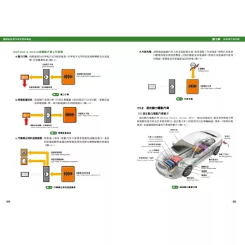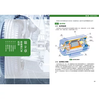2.直觀性 以簡圖、原理圖、解剖圖、分解圖等形式詳細介紹新能源汽車的組成系統、總成和零部件,使複雜的新能源汽車結構、原理一目瞭然。