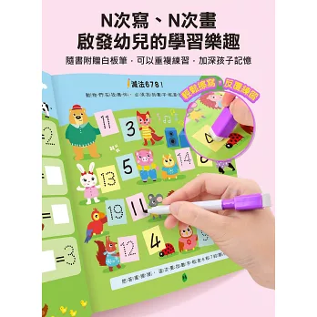 隨書附贈一枝白板筆,可以擦掉重複練習,加深孩子記憶;同時也不用擔心寫錯答案,更能讓孩子勇於下筆練習。