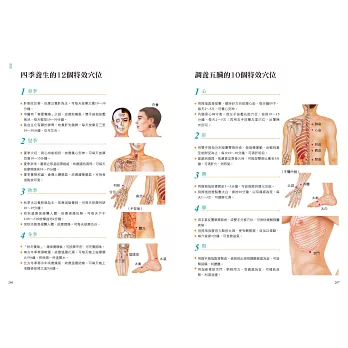 本書從常見疾病的按摩方法講起,將疾病與取穴融合在一起,為讀者提供了快速可查的特效按摩方法。另外,本書介紹的經絡穴位涵蓋了十二正經、任督二脈、經外奇穴,彌補了市面上很多圖書取穴不足的缺點。從基本的循行路線入手,再詳細為大家分析經絡上每個穴位的位置、取穴方式、對症治病以及特效按摩方法。您可以在人體骨骼圖上精準定位,也可透過真人演示圖放心按摩,解決了讀者難以判斷位置的困惑。人體骨骼圖和真人演示圖單獨成頁,老年讀者不戴老花鏡也一樣能精準取穴。