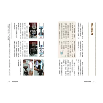 從介紹各部位零件開始,然後是最基礎的沖煮原理、虹吸壺小歷史,再到控制火源與練習各種攪拌手法,最後是相關清潔與保存細節,本書作者林子芃不吝分享自己鑽研虹吸咖啡多年的冤枉路與寶貴經驗,一一仔細解說,也詳盡回答各種虹吸咖啡疑難雜問。