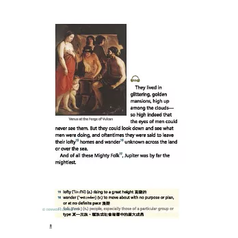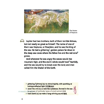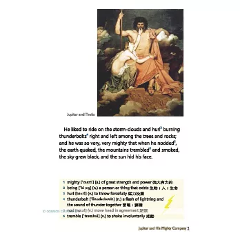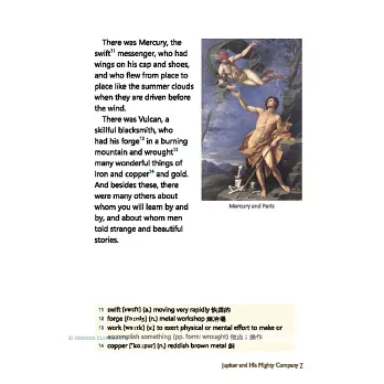 閱讀經典希臘神話,能更貼近西方文化,對於掌握英文字詞有更深厚認識。本書精選最經典的希臘神話故事,書中標示重點單字,附 IPA音標、英英注釋及中文字義;書後附中文翻譯,聆聽全文朗讀音檔,讓您同時提升英語閱讀及英聽能力!全書穿插世界名畫插圖,搭配文章閱讀,更添魅力,帶您進入那個充滿想像、浪漫的神話境地。