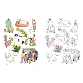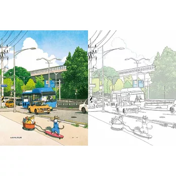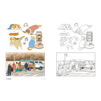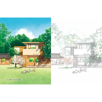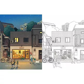 依韓國原書尺寸製作成16開,左頁是作者原畫作,右頁有黑色線稿做對照,部分鋪上底色引導讀者繪製,著色更有方向,又不失自由創作的樂趣。喜歡著色畫、首爾美景和可愛貓咪的你,也別錯過!