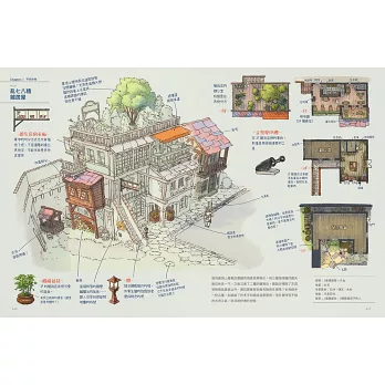 情境彩圖X建築線稿X內部平面圖X文字解說X旅途記錄